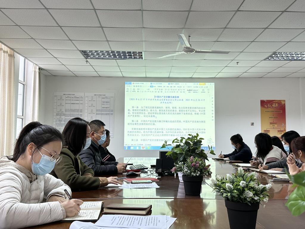 《条例》是我们党历史上第一部关于党徽党旗的基础主干法规,是党徽党旗制作、使用、管理的基本遵循。会上,支部书记石松同志领学了《条例》,对党徽党旗制作、使用管理、监督问责等进行解读,全体党员就《条例》内容进行了互动交流。