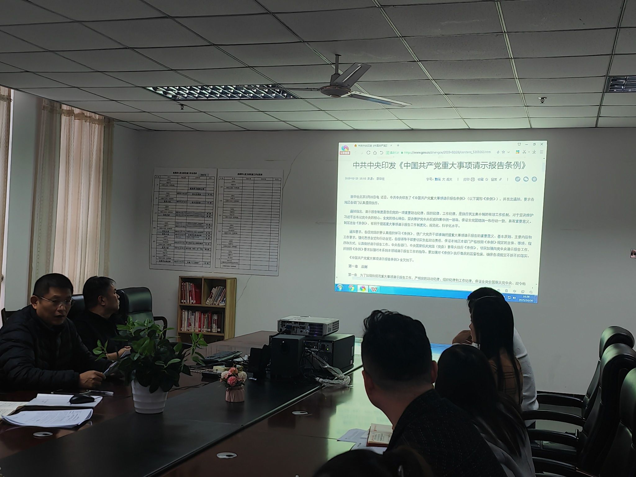 最后,集中学习了《中国共产党重大事项请示报告条例》。